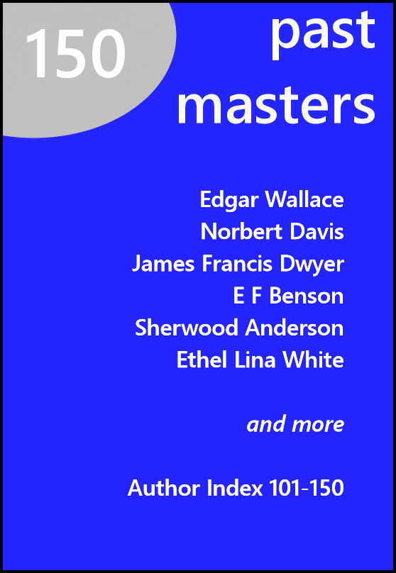 This, the 150th issue of the Past Masters series of anthologies, includes an author index for numbers 101-150. There are fewer stories than usual. due to some of them being quite long, and the Index itself is also rather large. My working size is around 100,000 words, rather than a number of stories. All the stories in this issue are in the Life+70 Public Domain.