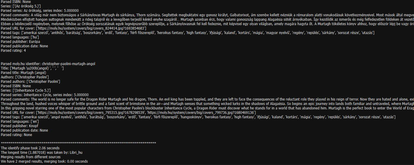 I've encountered a puzzling issue while using multiple metadata source plugins in Calibre, and I'm hoping to find some guidance or a solution from this knowledgeable community. The Problem: I frequently use several plugins to fetch metadata from different websites, aiming to get the most comprehensive data for my ebook collection. Each plugin is supposed to pull data from its respective source and present the findings in Calibre's main window, allowing me to review and select the most accurate or complete metadata for my books. However, I've hit a snag. Although the error logs show that findings from all used plugins are successfully retrieved, the main window of Calibre doesn't reflect this diversity. Instead, it only displays the metadata fetched by one of the plugins, seemingly overwriting or ignoring the results from the others. This limitation hinders my ability to compare metadata sources directly within Calibre and choose the best option for my needs. Steps Taken: