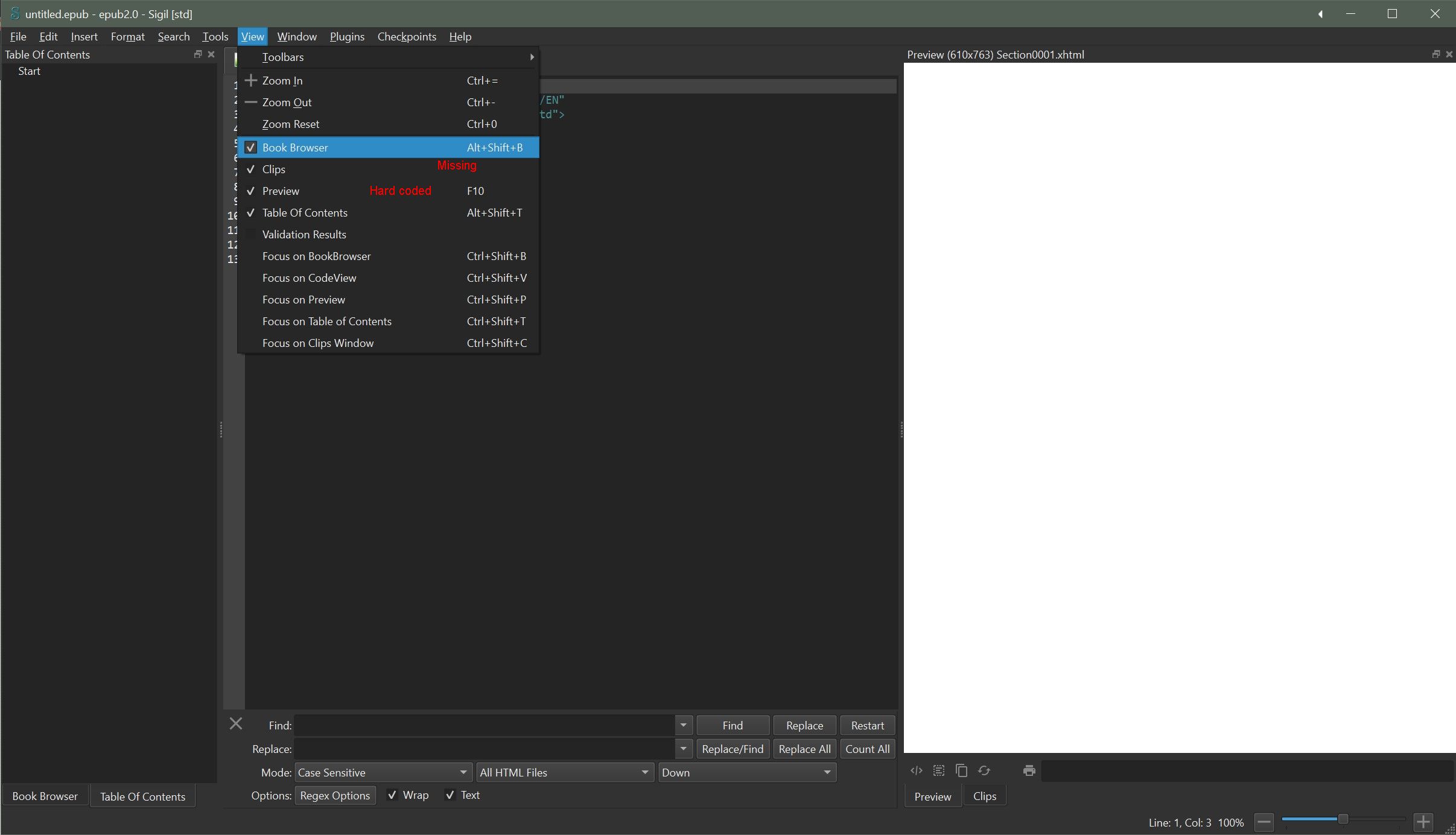 I also value the ability to simply show and hide a window without changing focus. If "…having 'esc' close a QDockWidget may be an easier [for you I assume] solution…" means me using the actual Esc key, then please provide an option to turn any such feature off. I would rather find the mouse and click the close button. If I can, I often assign Esc to 'Quit the application'. I can't do that in Sigil… which is fine… but if I forget that, and I hit Esc in Sigil it does nothing, which is also fine, but I would not want Esc doing anything else. Added: if you were to ask me to rank the issues raised here against the issue of Tab shifting focus between windows, I'd probably rank the latter lower. I put that down to BekkyEbook's .qss patch. IMO it should be a built-in preference in all Qt apps… spotting which control has focus is also hard in other Qt based applications I use. BR Last edited by BetterRed; 04-07-2024 at 10:22 PM. Reason: Added |