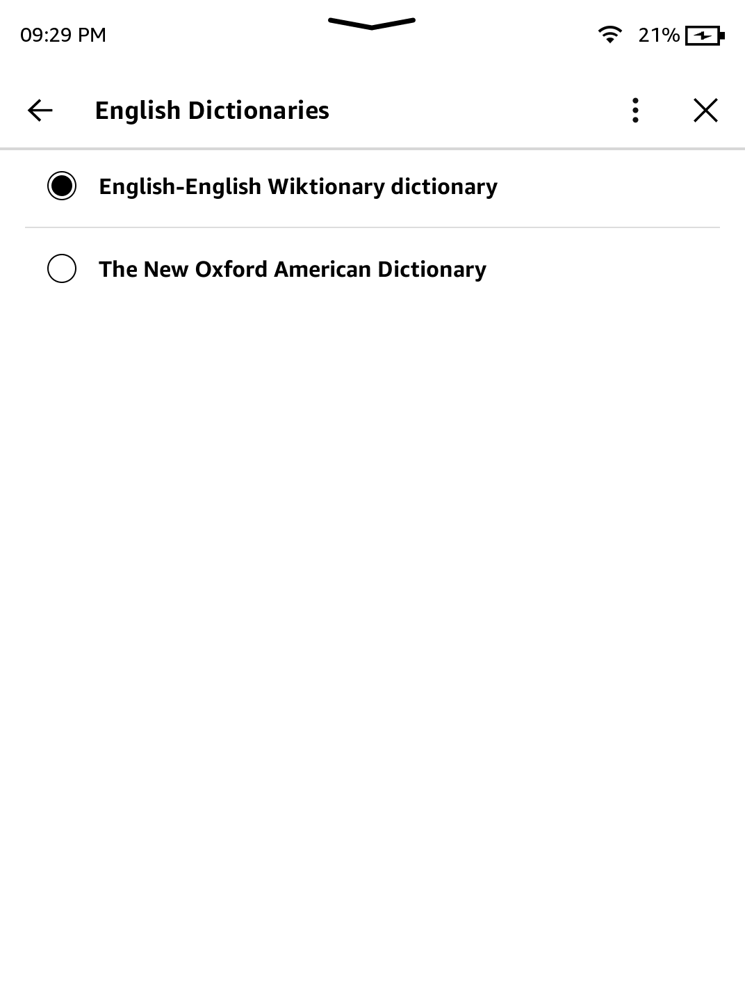 OTOH, I seem to remember it being mentioned that the Mobi dictionary format was not the same as the standard mobi format. Edit: Just for the heck of it, I copied the English-English Wiktionary file into /documents/dictionaries on my Paperwhite 10th gen. It showed up when I displayed English dictionaries and I was able to select it. A word lookup from within a book worked. All in all, I would say the dictionary does work on a Kindle. Last edited by DNSB; 04-30-2024 at 01:36 AM. |