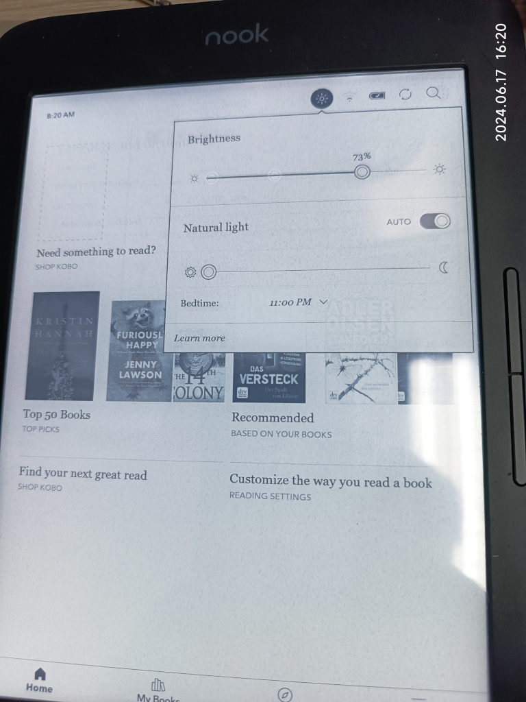 A Kobo firmware on Nook Glowlight plus 7.8 2019