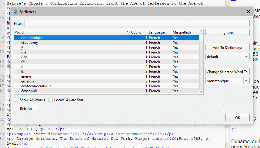 Using the default settings, no wordlist is displayed when trying to spellcheck an EPUB file (in French, and in Sigil 2.3.0 FWIW.)