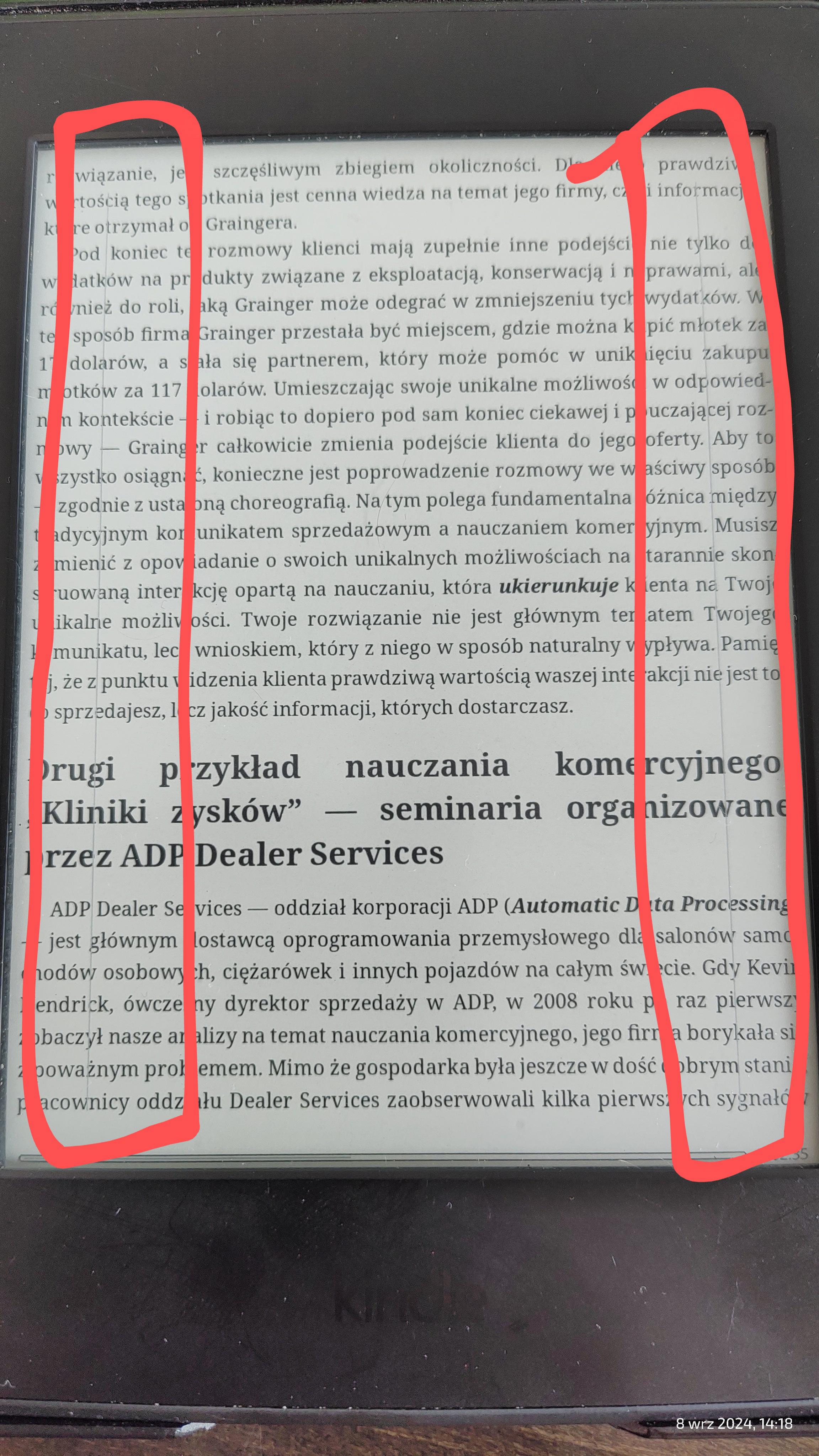 I’m having an issue with KOReader on my Kindle Paperwhite 3. After installing the app, vertical lines appear on the screen, as if they were part of the book cover. This happens regardless of the file format (PDF, ePub, Mobi). The lines show up in various spots and make it difficult to read. I have to manually adjust the margins—either increasing or decreasing them—to avoid the lines, which is quite annoying.I’ve attached some pictures to show what the problem looks like. Has anyone else experienced this issue or knows a solution? Thanks in advance for any advice! |