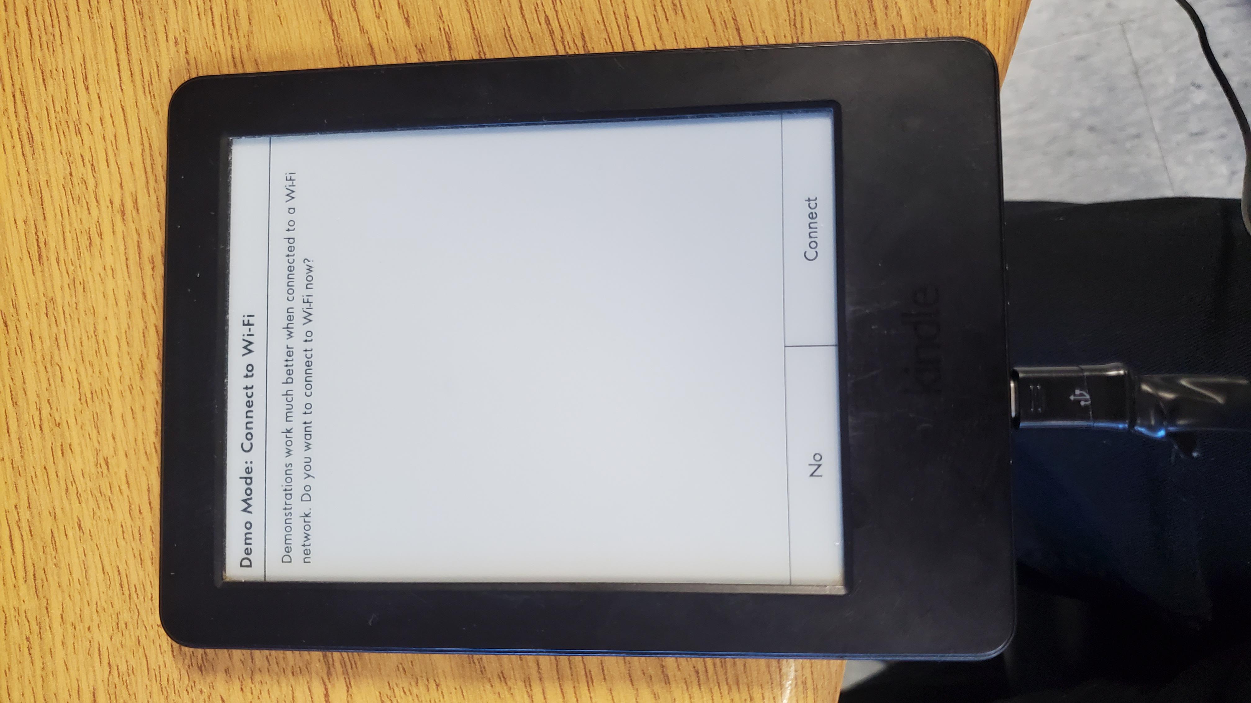 I recently started the jailbreaking process for my Kindle Basic (Model WP63GW), but am stuck entering demo mode. After skipping connecting to the internet and entering dummy store information, I am brought to a screen titled "Configuring Demo". The device remains on this screen until it powers off either on its own or when I tap the power button, at which point it returns to the demo wifi configuration screen. I have tried with and without connecting to wifi as well as holding the power button for a full minute, but am out of ideas besides attempting to reset it by connecting it to my PC. I haven't been able to find anyone with a similar issue online, but I apologize if this thread is redundant. Is anyone aware of a fix or bypass?