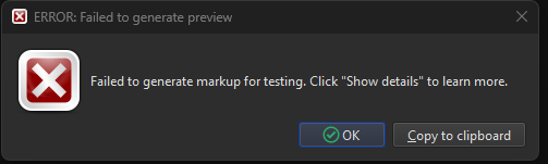 Here is the error dialog:
