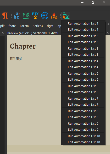 You could create more automate buttons but the Sigil user interface is cluttered enough as is!