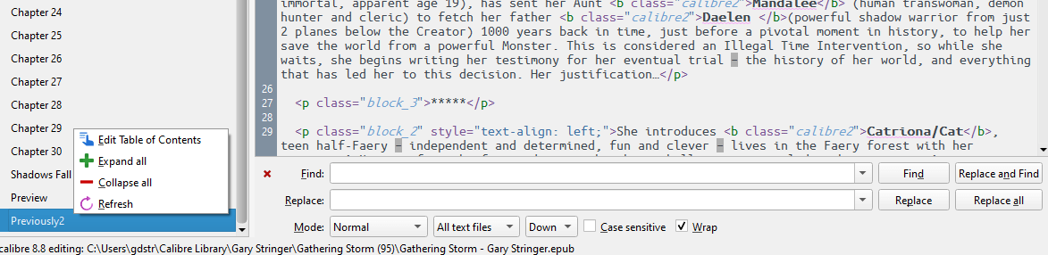 If you don't know the name of this file, pass over the targeted chapter in the ToC view, you'll see the filename in a tooltip. This in case each file is a chapter, of course (which is most often the case). Last edited by lomkiri; 08-17-2025 at 07:25 AM. |