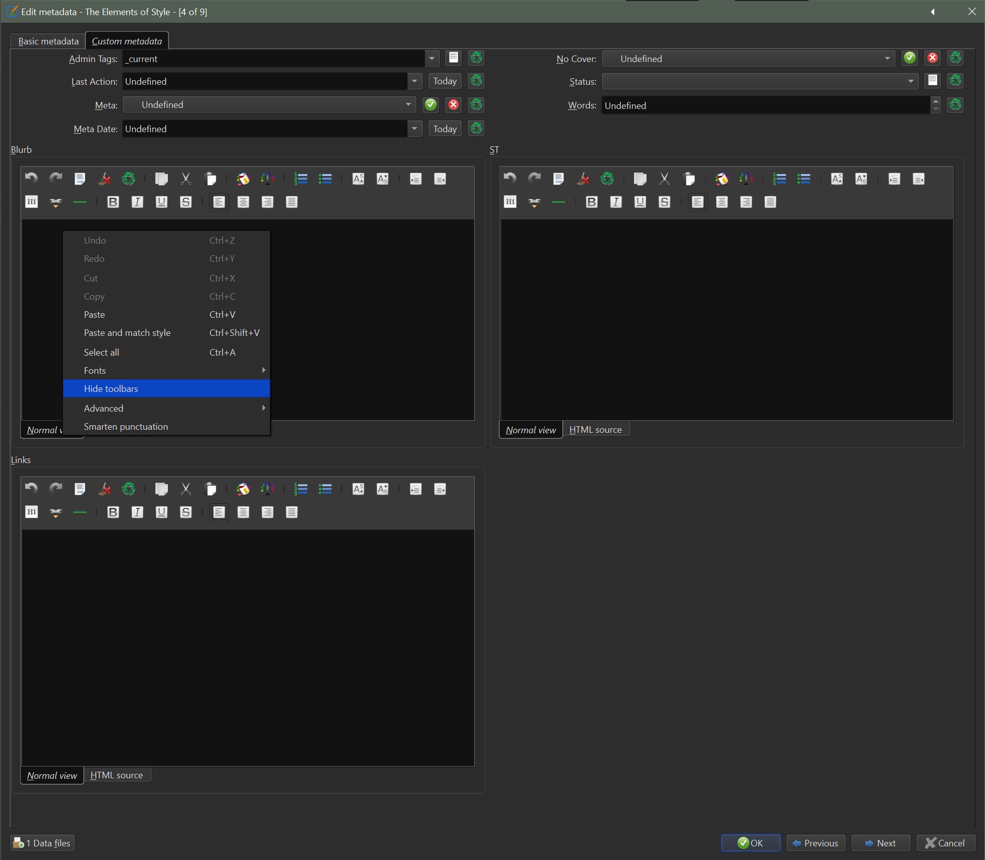 Another issue that I can't figure out. I've got memo field in the metadata that contain hyperlinks. Both in the edit page and in the book details on the main window, these are not showing as blue and underlined any longer. When I click from normal view to HTML source on the edit window, it clearly shows that the link is still there.
