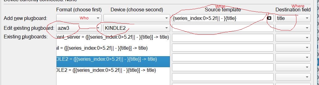 You need to identify which devices are your 'daily readers' Which MUST use file System for access Which can be tricked using the metadata plugboard I only put the Index in front of the Title on my Kindle. You can also manipulate the Author the same time There is no single solution on any device that allows you to do everything, at anytime. Start by connecting the device: Right click the Device View Icon: Configure Driver. And see what it offers. Then figure out if the Metadata Plugboard will allow you to fudge in additional data to a field the device does use. (The SAVE template is only for File naming. and has little effect of Metadata based book shelf manager devices) My Kobo does Series natively (you configure the driver once) |