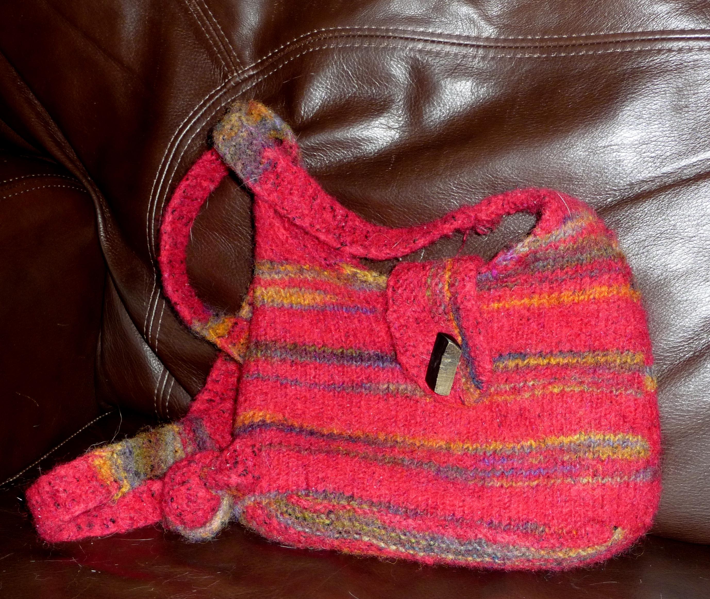 I just received my Kindle 2 a few weeks ago. The metal on the back freezes my hand, so as soon as custom skins were available on Skinit, I bought them. I'm not kicking myself over the availablility of decalgirl; I'm perfectly satisfied with Skinit (though if decalgirl is cheaper, I'll try it next time). I also finally made the tote bag. I used Filatura di Crosa 127 Print yarn in red plus a strand of Lion Brand Wool-Stainless Steel. I'm pretty happy with the result.