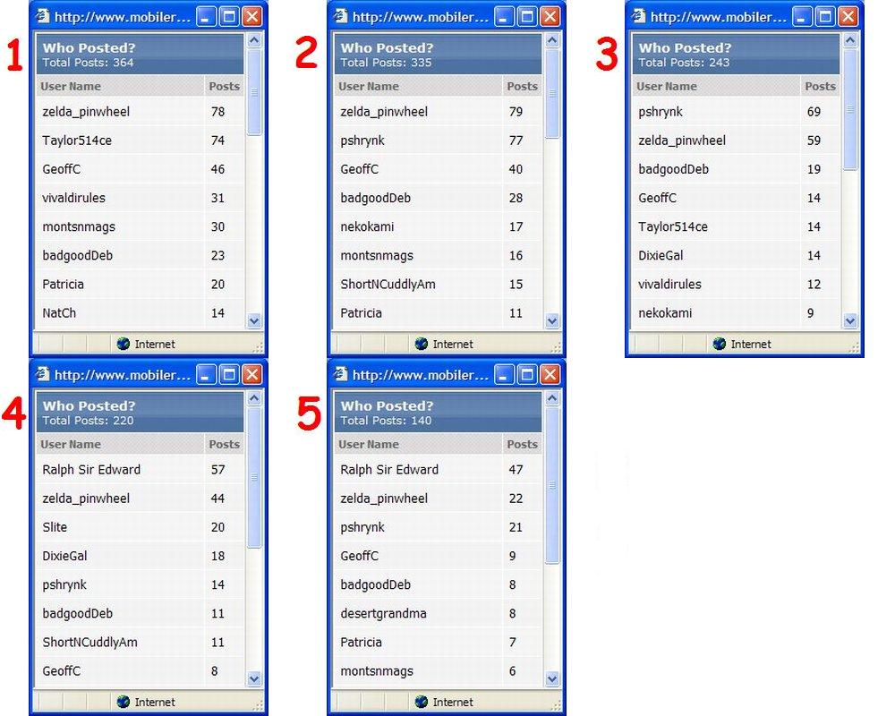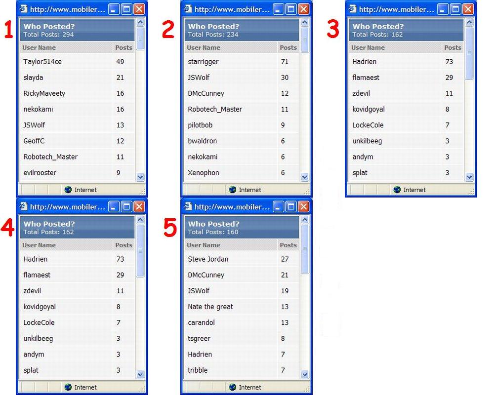 thats it? 1 topic with 1700 posts, I know a few people who have 3000 posts in the same topic when 4-5 people are all online at once, and take over a topic, it grows and grows.