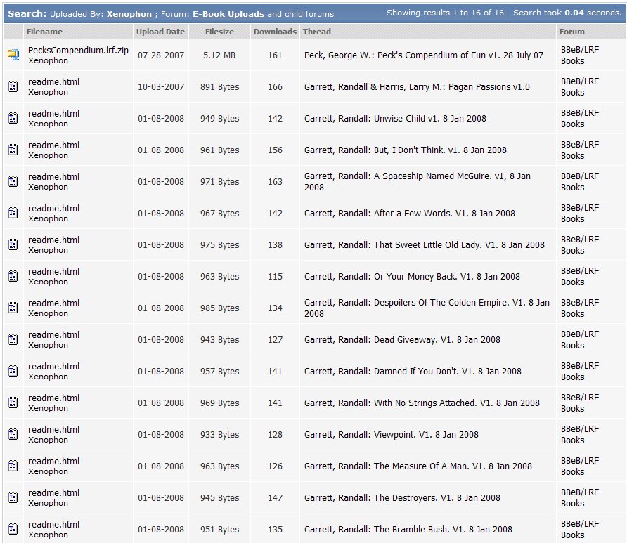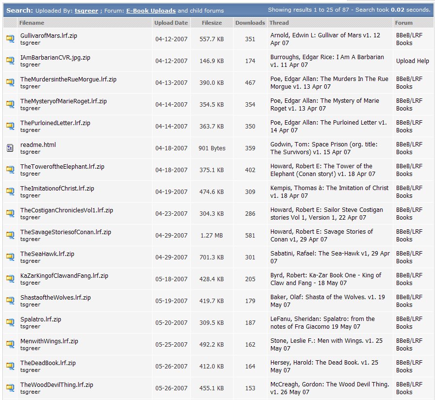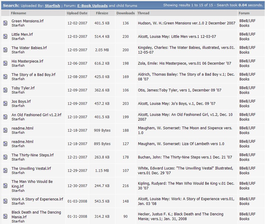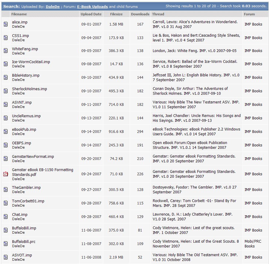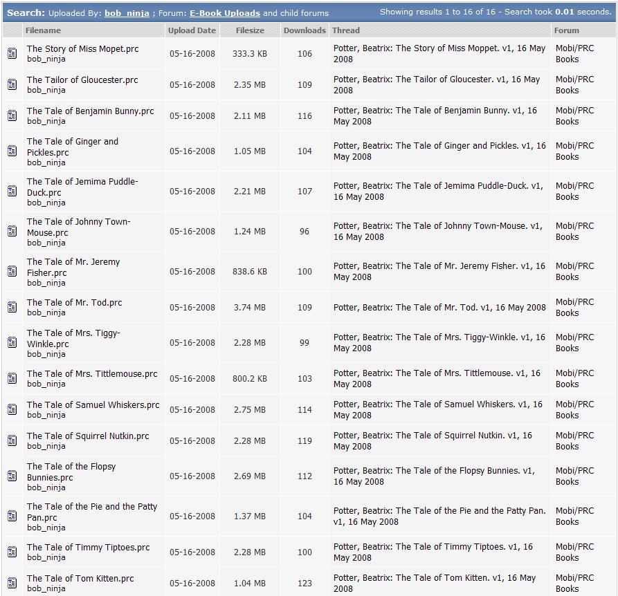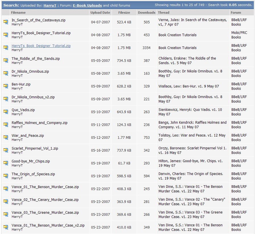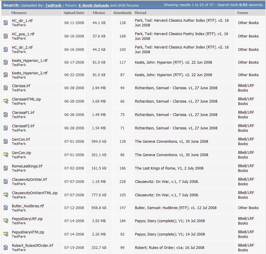![]() Well, ever wonder what these Top Uploaders uploaded in the early years of their ebook creation "careers"? Well wonder no longer as I present to you, the Top Uploaders' Early Ebook Uploads (Rank 01 to 18) in glorious picture form (and list form): Code: