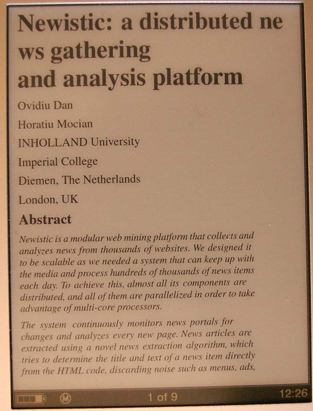 Please do .. the paper is here: http://www.ovidiudan.com/papers/Newistic.pdf I am guessing that the eSlick has better PDF support than most readers; I'm very curious how the paper would look like on a Sony, and any other reader for that matter. Thanks, Ovi |