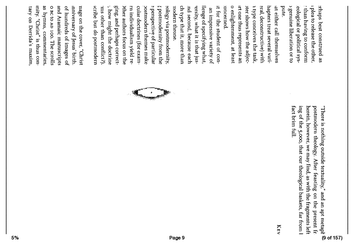 Comics: Doable. Not great. Screen is still just a bit too small for vertical use, but horizontal works fine. The method I was using is a PDF, I imagine a purer format one might get out of Calibre would be much better. But currently that's not an option. The grayscale looks great, but text is often to small. The vertical didn't seem to crop the white edges like the vertical. Magazine: I scanned (very high quality scan, mind you) a few pages of a standard glossy. Text is again too small for vertical use, but horizontally it is very readable. PDF text: Tried a number of these. One had a standard 12pt Times Roman font. A BIT too small on the screen vertically. Horizontally was about 11pt and very readable. It also leaves a bit of the last page up top so if you're cut in the middle of the line you're fine. A smaller PDF that actually got enlarged a bit with the screen was very nice and very readable. PDF tables of contents do NOT work - and that is a big pain in the butt. Badly scanned PDF: I scanned a few pages from a book - two pages showing. Unreadable in horizontal, too small. When turned it tried to be smart and just show part of page but you hit next and you'd get lines, etc - boy... this is hard to explain. Okay... Included a screenshot (first one) Scanned journal article: Single column - looks great Digitial journal article: wonderful PDFs, text and scanned - were often very slow to change pages (sometimes as long as 5 seconds - and this file was only 4.6mb) (I'll add more as I do more). |