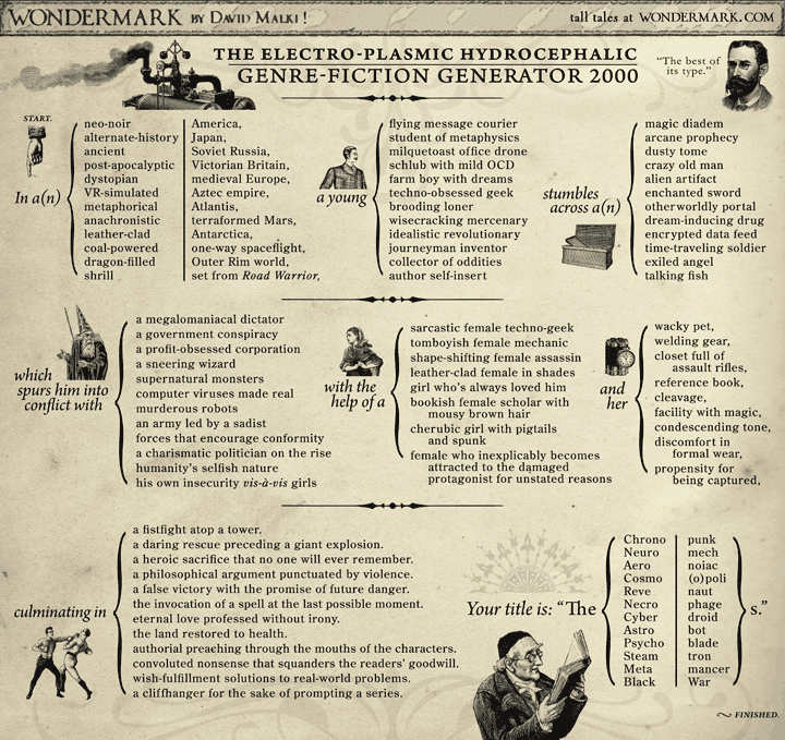 Either get a website to do it for you automagically: http://fictiongen.boxofjunk.ws/ or roll your own direct from the source: |