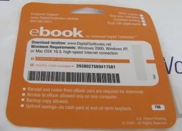 I'm sure you're scratching your head, but I find it fascinating. Look at the image. Do you see the hole in the top of the cardboard square? I think that little piece of cardboard is supposed to be hanging on a hook in a college bookstore. Obviously the hook is supposed on the shelf next to the paper version of the digital textbooks. In case you're interested, the link in the image leads to www.digitaltextbooks.com. This site is owned by MBS, a textbook disitributor (both paper and digital). MBS is a business partner of B&N College, and currently handles digital textbook sales for B&N. MBS has been in digital textbooks (and ebooks in general) longer than B&N, so don't interpret that to mean a subordinate relationship. Last edited by Nate the great; 12-04-2009 at 10:54 AM. |