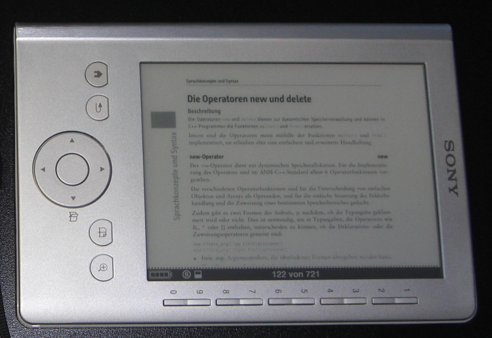 I primarily read technical literature in PDF format, and for that purpose the display resolution and size of the Iliad (1024x768 pixel, 8 inch) is quite ok. But I wanted a more portable device, with a longer battery life, to take with me more easily. So I looked into the PRS-300. The resolution of 800x600 is ok, because other devices do not give more resolution, only a bigger display. And the capability to reflow PDFs was also an interesting perspective. So I got one a few days ago, as I am located in Germany, the reader emerged late in the online stores here. I finally could get it for 185,- EUR. Keep in mind, that the Iliad was 500,- EUR at the time I got it. First impression after unpacking the PRS-300 was "Wow, really a nice metal shell!". The weight is also a lot less than the Iliad. After installing some books on it and started reading I was even impressed more. The switch-on time from standby is nearly instant. The reflowing of PDFs works nice, and I can also read PDFs in landscape mode in the original layout, half page per screen. Epubs also work nice. The display is crisp and the background not as grey as on the Iliad. I really like the reader so far, and the price point is quite ok. I think at a few bucks less, say 100,- to 150,- EUR this could make quite a big impact in the reader market, also for the occasional reader. I do use the included "Reader Library" software only for the creation of collections or to get DRMed epubs on the device. Otherwise I copy the files directly on the reader (it shows up a a standard mass storage device in Windows XP). Here also some pictures, first a comparison of size and "whiteness" of the PRS-300 and Iliad, then the PRS-300 in landscape mode with the same document and finally a page of an epub on the PRS-300. Last edited by DeReader; 01-03-2010 at 10:46 AM. |