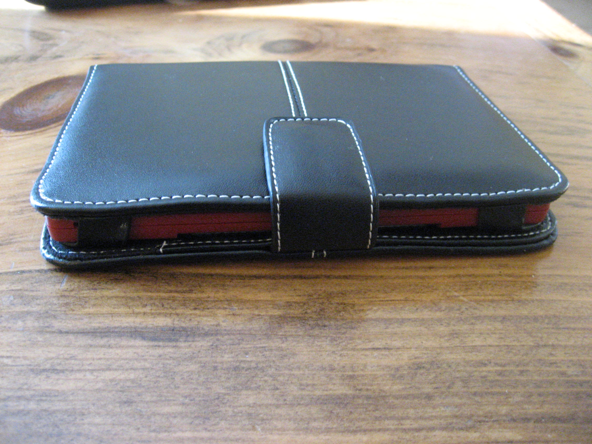 I slightly modified mine (I got rid of the pocket) to use it backwards from the intended way... It is almost exactly the same size at the jetbook when closed. You can see in my photos that the zero button and the back button can be covered up, but pressing the strap over the button works fine. It can be bent around the back ok, but there is a bit of a crinkly sound around the spine area when doing it so not sure what is inside the case. It seems firm enough around the LCD though. The clasp is a magnet. Last edited by tselling; 01-14-2010 at 03:23 PM. |