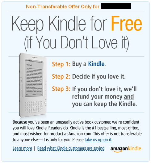 Amazon Promotion-Money Back Guarantee, Keep the Kindle?