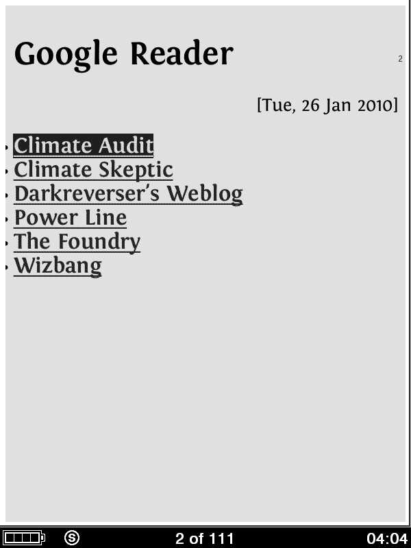What does tagged mean in Google Reader? Tagging means that you have added your feed to a folder under the manage subscriptions link. Every subscribed feed starts out not in a folder. Adding the subscription to a folder tags the feed with the folder name. You can add all your subscriptions into one folder called "news" or be more creative. I just placed each subscription in a folder the same name as the subscription. Of course you don't have to place any subscriptions into folders if you prefer. I placed my subscriptions in folders because I was using Google Reader Uber which creates a single reading-list. I thought that placing them in folders might make my output look prettier and be more manageable. Well it did pretty it up. Now instead of just the reading-list my feeds were also in sections. Once I managed all of my subscriptions in Google reader it dawned on me that I was tagging my feeds by placing them in folders (sometime I am a little slow). I went back to try the recipe Google Reader and it looked the same except there was no reading-list section. The kicker! It turns out that once I placed all my subscriptions in folders I was downloading everything twice using the recipe Google Reader Uber. Once for the big all encompassing Reading List then again as it skillfully grabbed the items in the folders. To clarify what I'm saying I have attached two screen shots. I used the Google Reader recipe for one and then the Google Reader Uber recipe for the other. The same exact articles were grabbed by both. You can see that the book created by Google Reader recipe is only 111 pages where the book created by the Google Reader Uber recipe is 208 pages. The Uber book is larger due to the fact that I placed everything in folders. Because my subscriptions are in folders the Uber recipe actually went out and grabbed the articles twice. Bottom line: