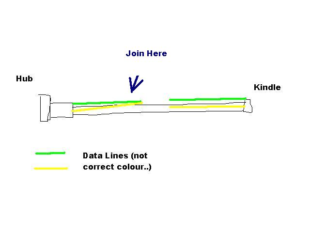 However there is a hack to short the data lines which gets over that problem. I've used it to enable my N85 to charge using a blackberry cable from a USB charger. http://en.wikipedia.org/wiki/Universal_Serial_Bus#Power "The Dedicated Charging Port shorts the D+ and D- pins with a resistance of at most 200Ω. The short disables data transfer, but allows devices to detect the Dedicated Charging Port and allows very simple, high current chargers to be manufactured." What is is effectively is identify the data lines (white/green???) and join them so that they are running from the usb socket back to the socket. I'm attaching a very badly drawn sketch which might help... |
