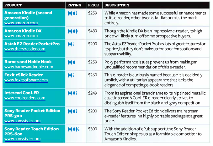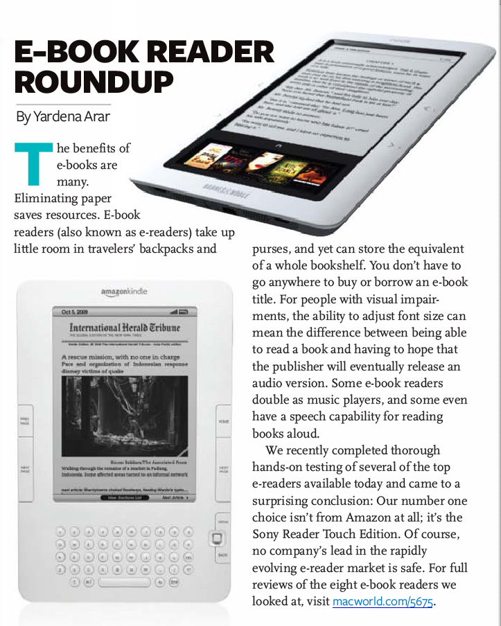 I get a digital Macworld via Zinio and here is a little write-up done this month on ebook readers. Looks like the Sony PRS-600 got the best rate.