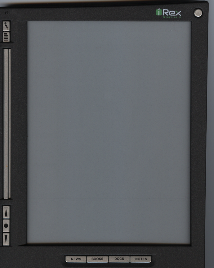 It is on all screens even when powered down. It has always been there since I received my iLiad a few days ago. I ignored it at first thinking that it was part of the design and it was the space for the keyboard pad. But I have just realised that the line goes straight through the keyboard pad. I have been studying all the pics uploaded by other members and can't see any with this line. |