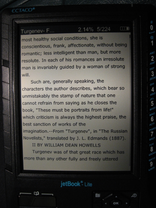 I've only read one thing on jbl with pdf format. It was a short story, so it wasn't long. Even then, I didn't notice the inconsistent font sizes that you said. I'll upload a longer pdf file and see what I'll find. I'll get back to you on this. The reason we're recommending you against using pdf is because of the format of the page. The screen is small enough. To any normal person, it's more comfortable to read a font bigger than ant size. That's what you can do with the other formats. You have 6 font sizes to choose from. With a pdf file, the only way to make the text bigger is to increase the view size of the entire page. That means that you have to scroll the page right and left and up and down to read. May be you're comfortable with this, but to the rest of us, it's downright annoying. But again, if you want to spend more money on a unit that you have many font styles to choose from as well as a bigger screen to comfortably read the pdf files, you go right ahead. I don't mind. Edit. Can you post a picture of one of these pages when the font size fluctuates? Last edited by jblitereader; 04-11-2010 at 12:30 AM. |