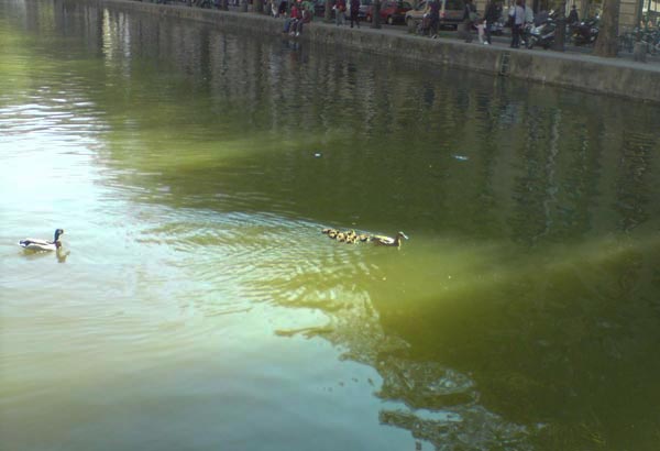 bon alors on va dire que les canards sont pas bêtes, et qu'ils déménagent comme ceux du parc montsouris, pour couver sur le canal. je suis sûre que c'est ça.sinon, pour les voir, leur qg (où ils passent la nuit) c'est à côté de la station de l'éclusier au niveau de la rue alibert, côté quai de valmy (on leur a gentiment fait une rampe pour sortir de l'eau), et en général ils naviguent entre le pont un peu plus bas et le pont tournant un peu plus haut. donc il faut parfois marcher un peu pour les trouver (et ouvrir l'oeil, car ils sont petits quand même !), mais je les ai jamais vu aller plus loin. |
