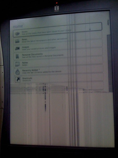 It suddenly shows as in the picture. I have used executive protection with it. Now, contact IREX to send them fix without knowing display problem or circuit problem. Let you know the result. |