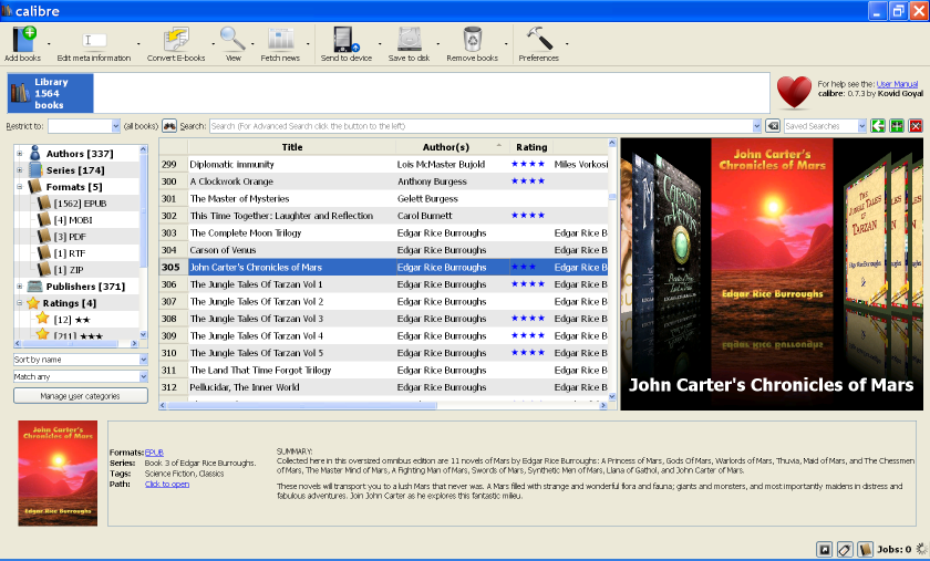 I will have to say that Calibre is just getting more amazing and useful every day. I really love the new widescreen option for example. I've been also enjoying updating my books as Calibre is finding many more book summaries than it used to. Both are excellent features! I'm not quite so sure about the animated book covers in the detail pane, however. My computer is not the quickest around (*sigh*) and sometimes the animation is a little jumpy and distracting. I think I would prefer to have the image just pop up straight. Is there a way to turn off the animated covers? I tried to look in the GUI options, but I didn't see it.