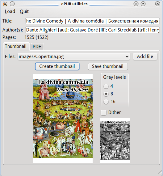 So... someone told me that I should create a GUI version of my epub2pdf.sh script, and after some time I bit the bullet and had a quick learning of python and Qt. This is a first working version of the thing. It not only generates PDF files from ePUB (if you have prince installed), but also creates thumbnails for use in the Cybooks (if you have convert installed). I think the interface is quite self-explanatory, at least for someone who knows more or less what the program is meant to do.