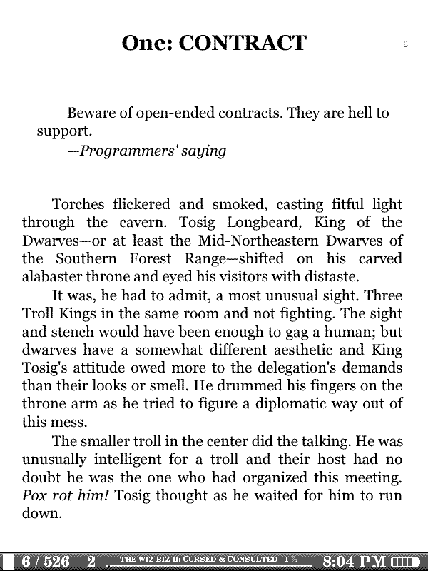 (It's page 1 of Rick Cook's WizBiz2 from Webscription.net. The entire series is highly recommended. Lots of premium SF and Fantasy there and in their free library.)