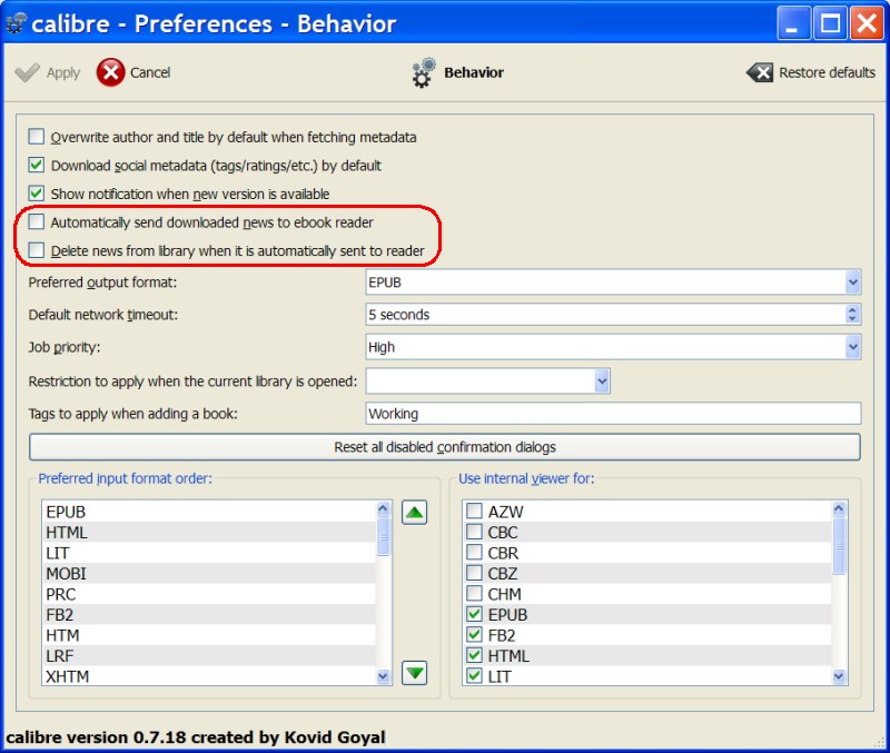 1. Add the function "Delete news from library when it is automatically sent to reader" - as an option in each newsfeed so it's an individual newsfeed setting rather than a global one. 2. Add the function "Delete downloaded news older than x days" as an option in each newsfeed, again so it's per newsfeed and not a global setting. I don't know if either is an easy change, but they would be nice to have. |