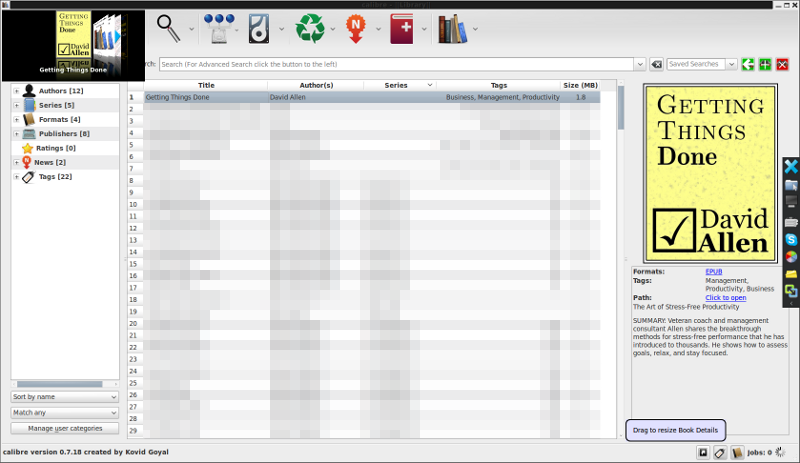 Today I decided that instead of running calibre once a day to get all this done, I would just keep it running all the time. I won't even have to bother with it unless I am adding a book to my bloated collection Unfortunately, the --start-in-tray option is not working. When it launches I get a blank window until I quit calibre and manually launch it. I have attached a screenshot of what this looks like after a clean boot (or a launch using the same options from the terminal).Note: I am on a Linux Ubuntu 10.04 system using Gnome as my desktop environment on an HP dv7t quad edition computer with an x64 processor. |