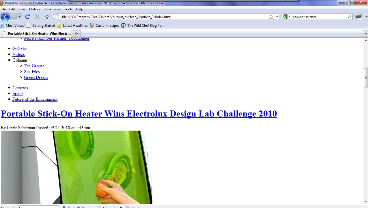 ![]() The issue at hand is still this. If i take and run ebook-convert test1.recipe out_put_dir --test -vv > myrecipe.txt Yes, I know it only gets too feeds. but the problem is in "most not all but most cases" it cleans the dang junk up. So when i run the test after using remove_tags then I see no junk I automatically assume that it is fine. But that is simply not the case. For instance the popular science code that I submitted for 7.20 I was led to believe it worked fine because the console test looked perfect. yet when i look run the built in recipe in 7.20 i get junk. I ran the recipe without --test and the same exact article(s) that showed perfect when using the --test switch show junk. So what is the suggestion? To not use --test and run full feed parsing? The test just makes it faster to well "test" here is the code if your interesting in seeing what I mean. I mean yeah i realize that it needs more remove_tags and keep_only tags but that is not the issue. The issue is why does the same article from the same feed with the same code show two totally different results when i use --test vs not using --test ? Spoiler: